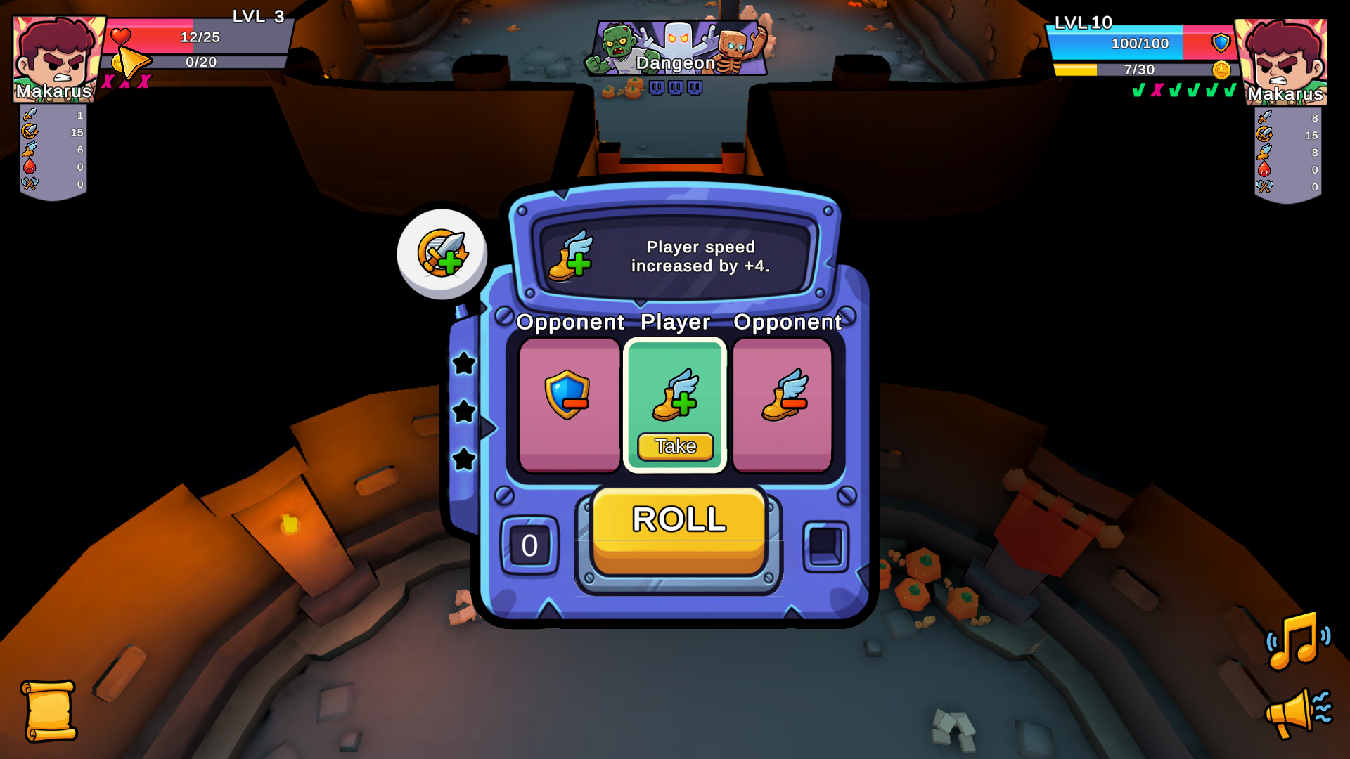 As you level up, spin the slot machine. Earn bonuses. Or send debuffs to your opponent.