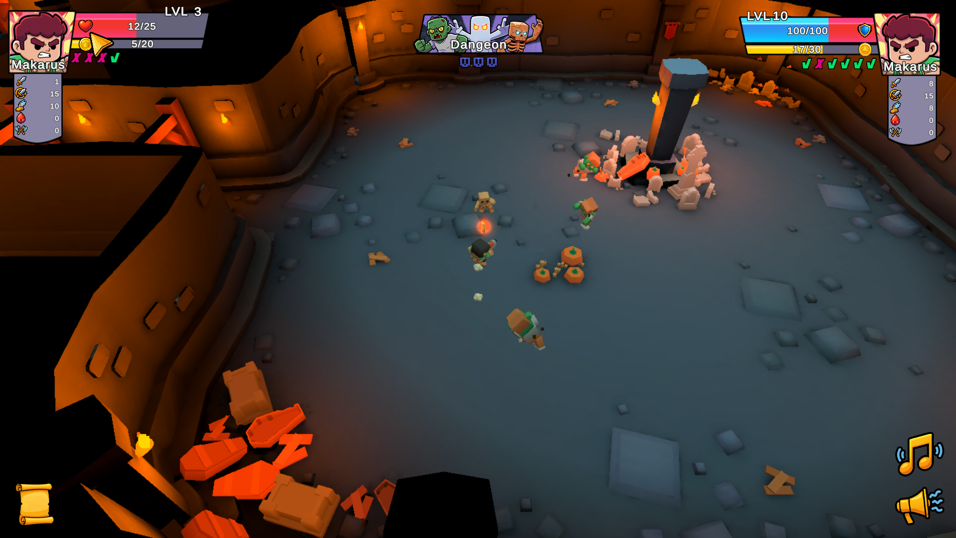 This is a minimalist PvPvE roguelike where two players fight on a map filled with enemy mobs. To grow stronger, players farm experience, level up, and choose one of several random permanent modifiers. Modifiers come in three types: boosting your character, weakening your opponent, or empowering the world to make the game harder for both players. Hero stats can scale infinitely, turning each duel into a race of builds and counter-builds. Rooms on the map reset after players leave them, pushing both sides to keep moving and competing for chests containing valuable resources. The match ends when one player manages to kill the other.