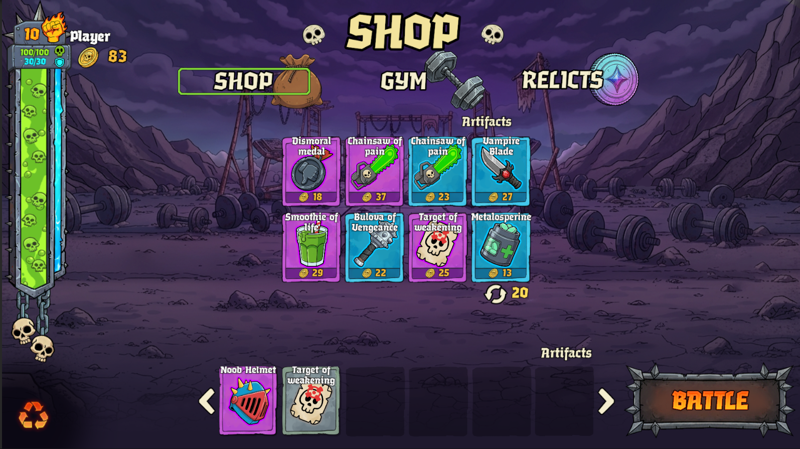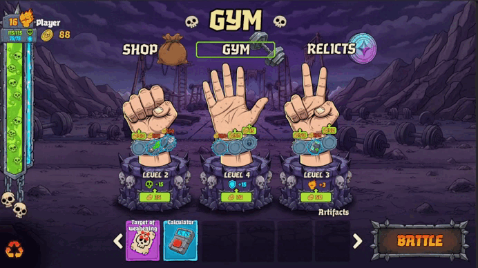 Effects can be triggered not only by winning, but also by losing, drawing, and specific enemy behaviours. This will help you in difficult moments when everything is going wrong. Read the descriptions carefully and craft your build wisely.