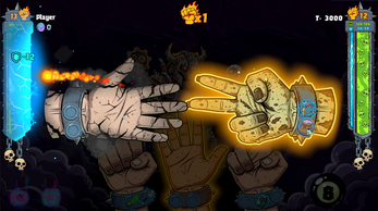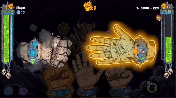 Each element (Rock / Paper / Scissors) has its own effect slots. You can insert artifacts into these slots to make your hand more lethal and defeat your opponent.
